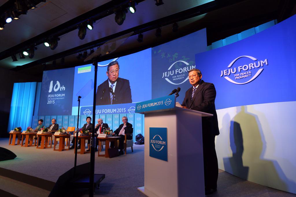 Hari kedua di Jeju Forum Ke-10, Kamis (21/5), SBY menjadi pembicara kunci dengan tema perdamaian dan kesejahteraan.